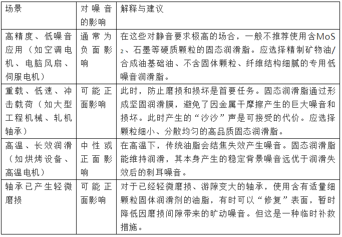 在特定条件下,固态润滑脂反而有助于降低噪音。
